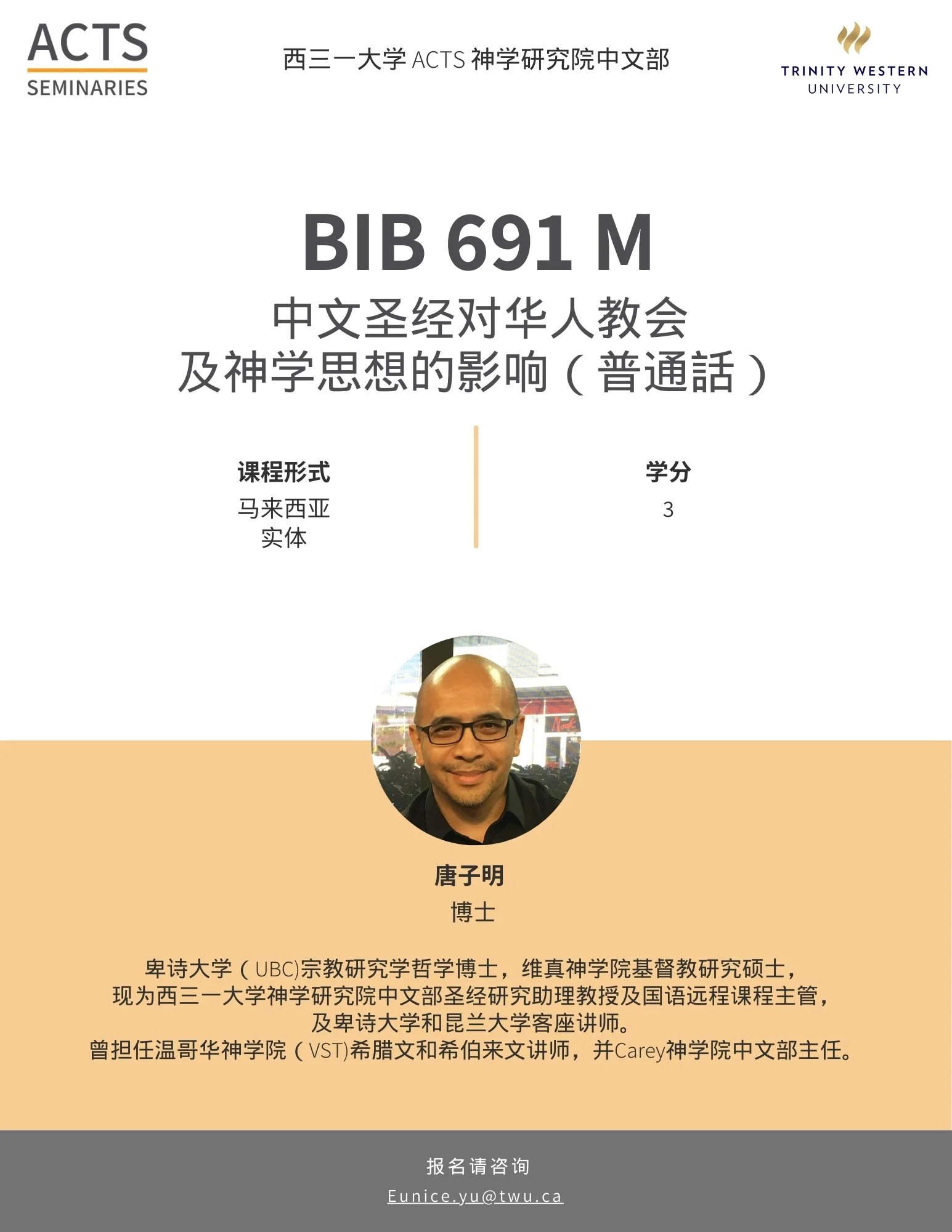BIB 692 M | 中文圣经对华人教会及神学思想的影响(普通话)